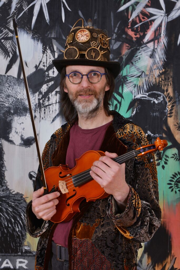 De vrijheid om het ook muzikaal persoonlijk in te vullen is wel aanwezig bij deze voorstelling en het wordt allemaal steeds duidelijker, mede dankzij het personage dat ik speel. Ik loop rond met een fijn licht viooltje en ik heb wat percussie-instrumenten die het helemaal af gaan maken.